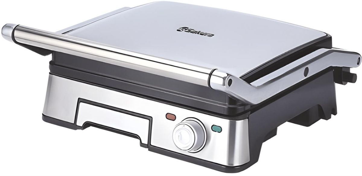 1800 Вт, жаропрочное антипригарное покрытие, регулируемый термостат (160-240°C), открытие панелей на 180°, съемные панели 290*230 мм, световой индикатор работы/нагрева, контейнер для сбора масла, защита от перегрева, горизонтальное хранение и транспортировка, 220-240 В, 50/60 Гц. Цвет: серебристый/черный.