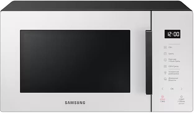 SAMSUNG MG23T5018AE/BW Обратите внимание БИОкерамическое покрытие Важная особенность Гриль Пользователи оценят Автоматические рецепты Серия модели Серия MW5000T Габаритные размеры Габаритные размеры (В*Ш*Г) 27.5*48.9*38.1 см Тип микроволновой печи СВЧ с грилем Да Объем Объем камеры 23 л Корпус Диаметр поворотного стола 28.8 см Внутреннее покрытие Bio керамика Тип открывания дверцы ручка Открытие дверцы налево Цвет Цвет белый Цвет корпуса черный Микроволны Мощность микроволн 800 Вт Гриль Тип гриля ТЭН Мощность гриля 1100 Вт Управление Тип управления сенсорный Функции Отключение звукового сигнала Да Электропитание Режим энергосбережения Да Потребляемая мощность 2300 Вт Безопасность Защита от детей Да Освещение Внутреннее освещение Да Вес Вес 12.7 кг