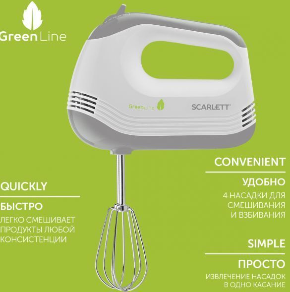 Миксер Мощность, Вт: 300 Количество скоростных режимов: 5 Режим TURBO: Да 2 венчика для взбивания яиц и кремов: Да 2 насадки для размешивания теста: Да Кнопка извлечения насадок: Да Материал корпуса: Пластик Цвет: Белый Материал корпуса пластик