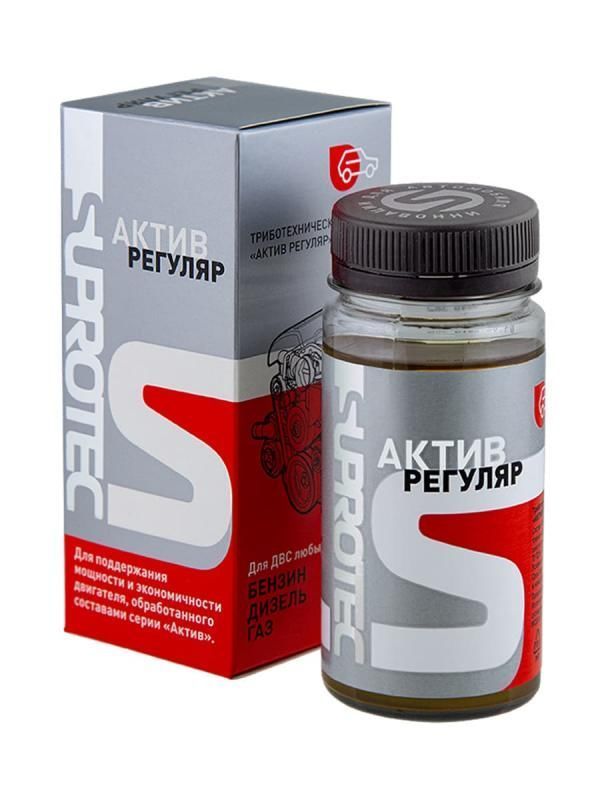 Триботехнический состав «Актив Регуляр» предназначен для поддержания рабочих характеристик и защиты от износа бензиновых, дизельных и газовых двигателей легковых автомобилей, которые были обработаны составами «Актив Плюс» или «Актив Стандарт». Состав поддерживает созданный во время обработки защитный слой на поверхностях трения, чем существенно снижает скорость износа. Чем медленнее идет износ, тем дольше сохраняются номинальные характеристики двигателя: мощность; расход топлива; расход масла; быстрый запуск; «мягкость» работы двигателя; низкая токсичность выхлопа. Кроме того, низкая скорость износа продлевает ресурс двигателя, откладывает необходимость ремонта. Трибосостав «Актив Регуляр» рекомендуется добавлять в масляную систему двигателя после каждой замены масла. Триботехнический состав не присадка в моторное масло, поскольку не меняет химических и физических свойств масла, но по способу применения может быть отнесен к присадкам для двигателя.