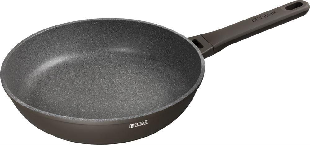 Литой алюминий. Покрытие: Двухслойное антипригарное WISTONE с эффектом гранитной крошки, не содержит PFOA, выдерживает до 14 000 циклов на истирание. Размер: Диаметр 28 см, внешний диаметр дна – 22,6 см, Высота борта 6 см Толщина дна 4,3 мм, Толщина стенки 2 мм Максимальная температура использования 220 ? C Бакелитовая ручка с покрытием Soft touch не нагревается при использовании конфорки или газовой горелки, не превышающей диаметр дна сковороды. Подходит для всех типов плит, включая индукционные. Индукционное дно обеспечивает равномерный нагрев. Рекомендации в приготовлении: возможно готовить с минимальным количеством масла, или добавить немного воды Уход за изделием: Всегда давайте посуде остыть перед погружением в воду. Рекомендована ручная мойка. Для продления срока службы сковороды рекомендуется использование лопаток, которые не повреждают поверхность, таких как нейлон, силикон или дерево.