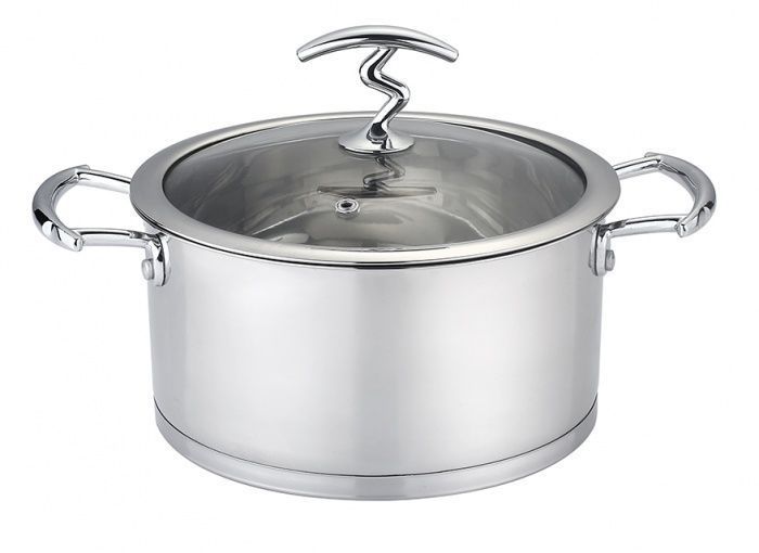 Материал: нержавеющая сталь и стекло. - Толщина стенок 0,5 мм, - Зеркальное покрытие внутри и снаружи, - Капсулированное дно, - Ручки из нержавеющей стали, - Стеклянная крышка, - Мерная шкала, - Подарочная коробка с гладким покрытием, диаметр 22 см