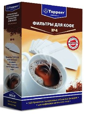 Бумажные одноразовые фильтры для кофе №4 (100шт.)ОТБЕЛЕНЫЕ Фильтры для кофе TOPPERR® изготовлены из специальной фильтровальной бумаги, произведенной в Германии, крупнейшей фабрикой Европы KONOS GmbH. Для изготовления фильтров для кофе используется бескле