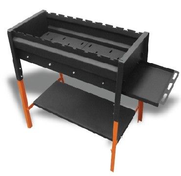 МАНГАЛ «Техно-3» стационарный из жаростойкой стали с термостойким покрытием до +700°С Предназначен для приготовления продуктов методом жарки в виде шашлыка на отдыхе. Изготовлен: лист стальной 2,0 мм, 1,5 мм(полка+зольник). Габаритные размеры собранного мангала : длина 760мм, ширина 550мм, высота 1000мм. Масса 22кг.
