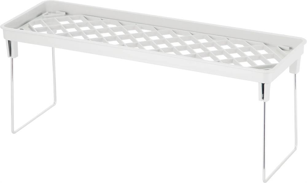 UniStor VENETA Органайзер для кухни складной, для организации пространства в кухонном шкафу или на столешнице. Размер: 43,5Шх14,5Гх17,20Всм. Материал: Хромированная сталь/пластик. Возможность штабелирования одной полки на другую. Пластиковое основание полки с мелкими ячейками позволяет хранить мелкие предметы. Простая и лёгкая сборка