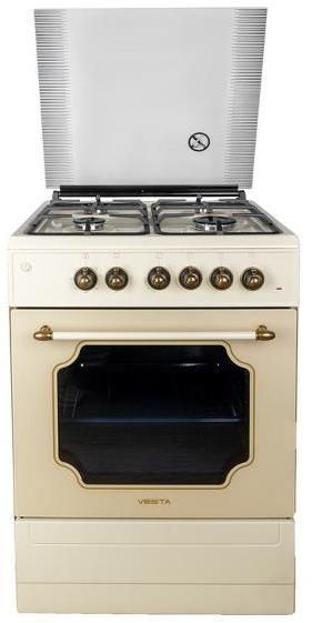 Горелки стола: Газовые – 4 шт. Мощность горелок рабочего стола: Горелка передняя левая/правая – 2,0/2,4 кВт. Горелка задняя левая/правая – 2,0/1,0 кВт. Электрический духовой шкаф. Объем духовки в литрах: 65 л. Верхний/нижний нагреватель духовки – тен.Решетка рабочего стола – сталь. Крышка рабочего стола – стекло. Термометр духовки. Кнопка электророзжига горелок стола. Электрическая подсветка духовки. Противень – 2 шт.Чугунные решётки