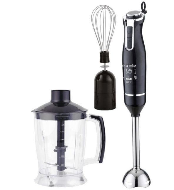 Напряжение: 220-240В/50-60Гц; Мощность: 950Вт; Объём чаши измельчителя: 1250мл; Режим "Турбо"; 2 скоростных режима работы; Металлическая погружная часть; Венчик для взбивания; 4 ножа из нержавеющей стали; Петелька для подвешивания.