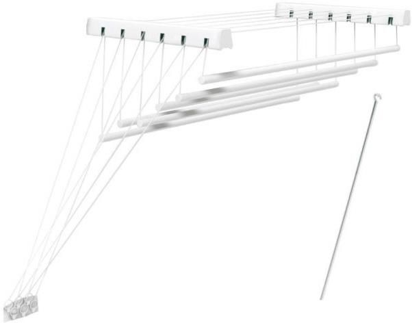 ЦВЕТ: белый. РАЗМЕР ИЗДЕЛИЯ: 430 x 1 400 x 1 350 мм. МАТЕРИАЛ: металл + полипропилен. Сушилка для белья с возможностью крепления на стену или к потолку. Оптимальна для использования в ванной комнате или на балконе. Изготовлена из нержавеющей стали с полимерным порошковым покрытием, которое защищает от воздействия влаги и предотвращает механические повреждения. Суммарная длина поверхности для размещения белья - 8,4м. Максимальная нагрузка - 12кг.