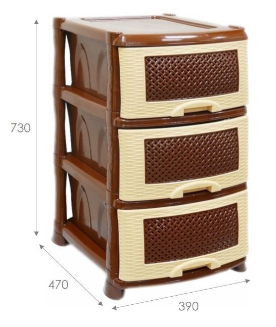 ЦВЕТ: коричневый. РАЗМЕР ИЗДЕЛИЯ: 470 x 390 x 950 мм. МАТЕРИАЛ: Полипропилен. Комод из пищевого пластика с тремя выдвижными ящиками предназначен для хранения вещей и продуктов питания и гармонично впишется в интерьер любой комнаты. Легкий и вместительный комод поможет обеспечить порядок, избавит от разбросанных игрушек или одежды, убережет продукты от пыли и заветривания.