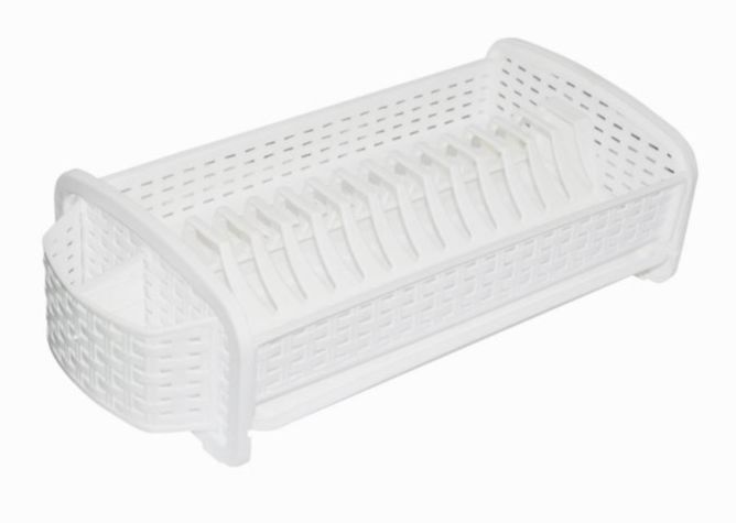 ЦВЕТ: белый. РАЗМЕР ИЗДЕЛИЯ: 230 x 460 x 140 мм. МАТЕРИАЛ: Полипропилен. Изделие из пищевого пластика для сушки вымытой посуды. Имеет секции для размещения тарелок и столовых приборов. Съемный поддон соберет остатки воды, которая стекает с посуды. Текстура с имитацией натурального плетения «Ротанг» привнесет уют в ваш интерьер и придаст индивидуальность.