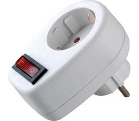 Бытовой переходник, используется как одноместная переходная вилка для подключения электроприборов с евророзеткой к сети питания переменного тока с заземлением. Разветвитель изготовлен из негорючего пластика и имеет на корпусе встроенный выключатель, который позволяет не вынимать каждый раз вилку из сети и тем самым значительно увеличивает срок службы прибора.