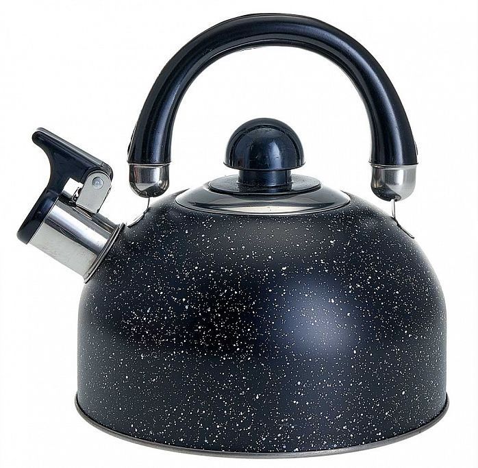 WEBBER BE-0539 Чайник из нерж.стали 2,5л.,индукционное дно Параметры Объем 2,5 л Описание Чайник из нержавеющей стали со свистком Высококачественная нержавеющая сталь c цветным покрытием Цвет: черный мрамор Матовая полировка Индукционное дно Подвижная ручка из термостойкого пластика Цвет ручки: черный Пригоден для использования на всех типах кухонных плит, включая индукционные