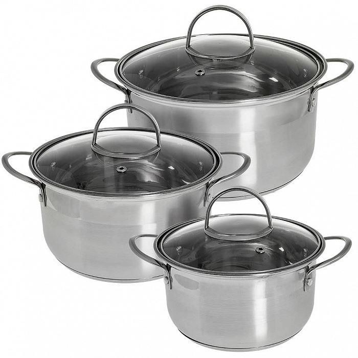 Параметры В наборе 6 предметов: кастрюля с крышкой 16?9,5см; 1,9л кастрюля с крышкой 18?10,5см; 2,7л кастрюля с крышкой 20?11,5см; 3,7л Толщина стали 0,4 мм Описание Набор кастрюль из высококачественной нержавеющей стали со стеклянными крышками Серия: Premium Термосберегающее капсульное индукционное дно Специальная форма, исключающая скопление остатков пищи и жира Обод, препятствующий переливанию жидкостей через край Быстрый нагрев пищи, длительное удержание тепла Минимальные потери минеральных веществ, витаминов и вкусовых качеств Подходит для использования на всех типах кухонных плит, включая индукционные Подходит для мытья в посудомоечной машине Упаковка: цветная коробка