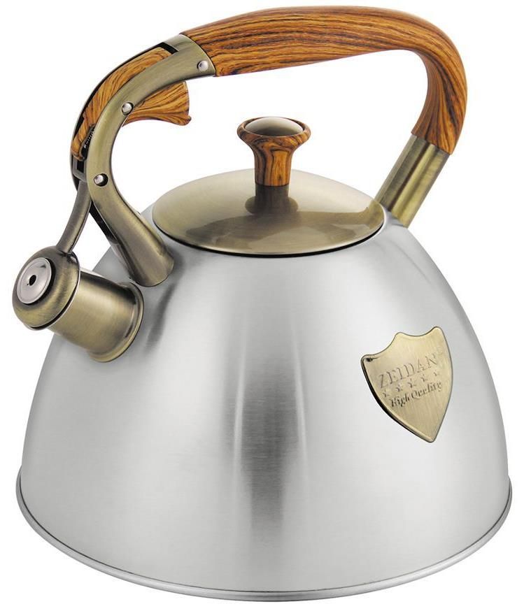 Чайник со свистком ZEIDAN Z-4466 3,0 л , Чайник со свистком, 3,0 л, нержавеющая сталь, капсулированное индукционное дно, курковый механизм, комбинированная ручка с покрытием "soft-touch" "под дерево", ДЕКОРАТИВНЫЕ ЭЛЕМЕНТЫ "ПОД БРОНЗУ". Подарочная упаковка.