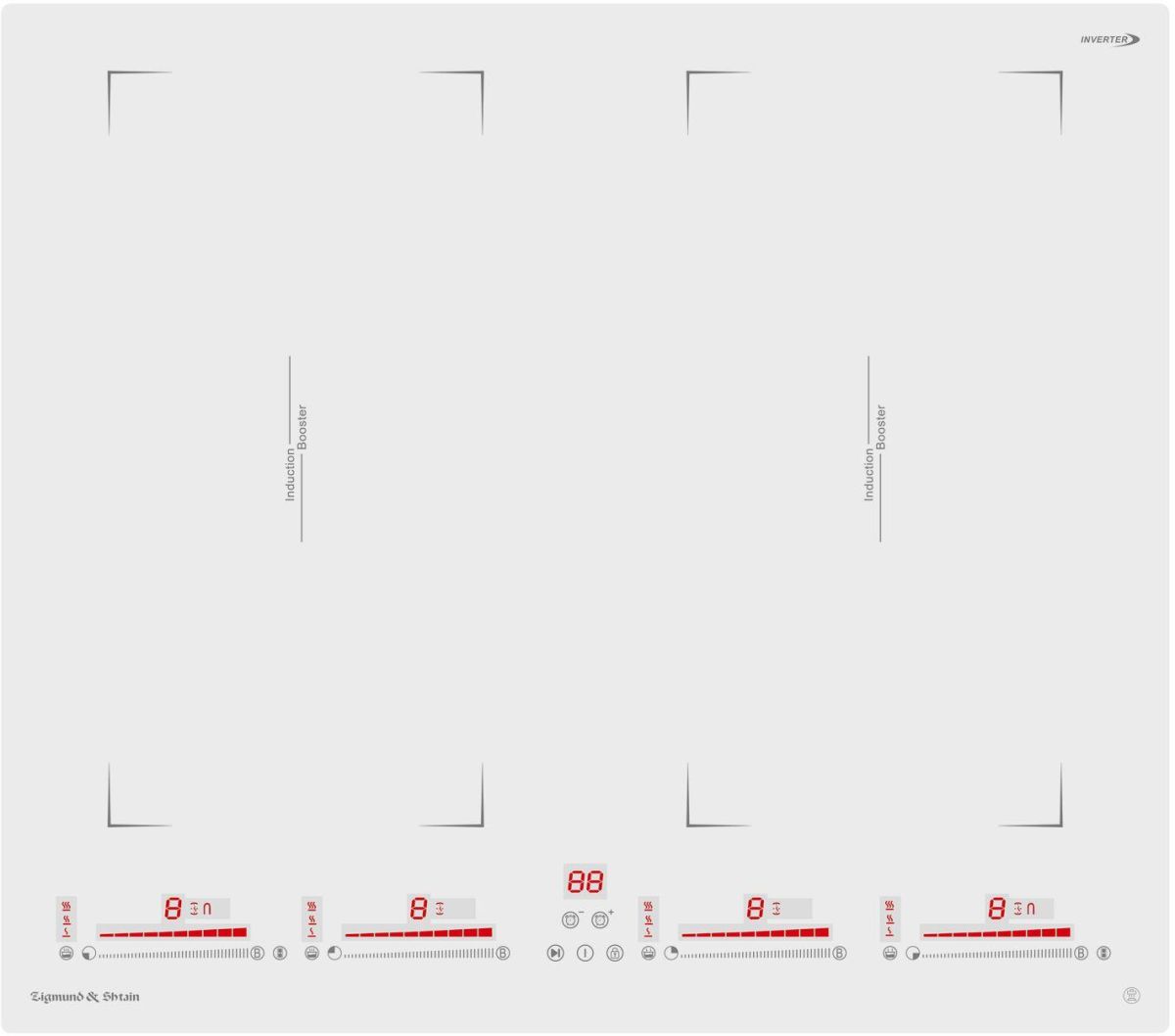 CI 29.6 W, Независимая индукционная стеклокерамическая поверхность 4 ИНДУКЦИОННЫХ ЭЛЕМЕНТА 2 элемента: 180 мм, 2000 Вт (бустер 2800 Вт) 2 элемента: 160 мм, 1500 Вт (бустер 2000 Вт) Общая мощность: 7200 Вт Цвет: белый Ширина: 60 см Размеры: 590х520 мм, Размеры для встраивания: 565х495 мм ОБЩИЕ ПАРАМЕТРЫ: • Инверторная технология нагрева • Фронтальное сенсорное управление слайдером • 9 уровней нагрева • Бустер на каждую зону нагрева • Таймер отключения на каждую зону, до 99 минут • Пауза • Поддержание тепла • Автоматическое определение размера посуды и адаптация мощности • Индикация остаточного тепла • Блокировка клавиатуры от детей • Автоматическая защита от перегрева, перелива, нечаянного старта • Защитное отключение при длительном использовании • Функция сопряжения с вытяжками Smart connect. Работает с вытяжками K 149.6 B и K 149.6 W.