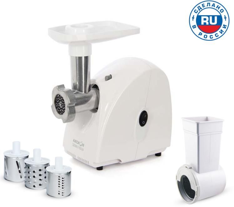 Цвет: Белый; Номинальная потребляемая мощность: 230 Вт; Мощность: 1500 Вт; Производительность – до 1,7 кг мяса в минуту; Двойная защита двигателя от перегрузки; Высокое размещение шнековой камеры дает возможность использовать глубокую чашу для фарша; Удобное хранение шнура питания и решеток в отсеке в корпусе мясорубки; Устойчивые нескользящие ножки из эластомера для фиксации мясорубки на поверхности стола; В комплекте - приставка овощерезка с 3-мя барабанами, защитный колпачок (в изделии+запасной), решетка с диаметром отверстий 4,9 мм.