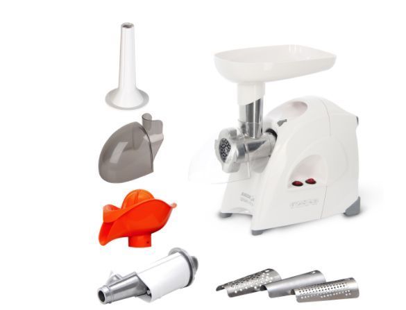 Габаритные размеры (ШxВxГ) 25,5/16,9/ 24,2 см * Производительность 2 кг/мин * Реверс Есть * Мощность 1700 Вт * Вес 4,7 кг * Цвет Белый * Двойная защита от перегрузки; Функция «реверс» для предотвращения наматывания жилок на шнек; Отсек в корпусе для шнура питания, хранения ножа и насадок; 3 вида решеток для получения фарша разной консистенции - с диаметром отверстий 4,9 мм и 7 мм, а также овальными отверстиями; Экран для защиты от брызг, который поможет сохранить кухню в чистоте; Высокое размещение шнековой камеры; Возможность вертикального хранения для экономии пространства на кухне; Ручка для переноски; Устойчивые нескользящие ножки для фиксации мясорубки на поверхности стола;