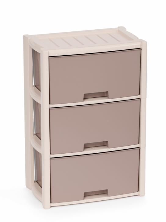 Вес 3.09 кг Размеры изделия (ДхШхВ) 475х300х710 мм 3-х секцион. Цвет бежевый. Комод произведен из высококачественного и безопасного полипропилена. Особую прочность комоду придает его цельная конструкция перегородок. Комод имеет выдвижные и достаточно вместимые ящики. На крышке и перегородках предусмотрены ограничители, благодаря которым ящик не будет вылетать при открывании.