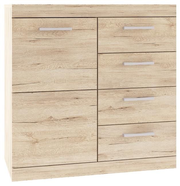 Тумба 1D4S OSKAR не занимает много места, но в то же время очень вместительный. Благодаря этому он является функциональным местом хранения. Большое количество ящиков и их внутреннее пространство можно использовать на 100%, а на верхнюю поверхность комода можно поставить телевизор, часы, статуэтки или дополнить его зеркалом.