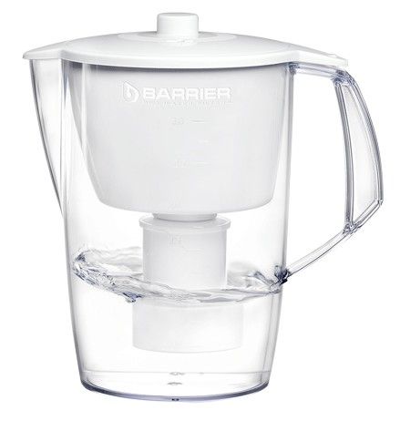 Объём кувшина 3,6 л, Размеры упаковки 190x190x270мм, Объём очищенной воды 1,6 л, Наличие и тип индикатора ресурса Нет индикатора, Объём воронки 1,5 л, Вес 0.83 кг, Большой объем Чистая вода для всей семьи, Защита от попадания загрязнений, Конструкция воронки защиает от попадания пыли в отфиьтрованную воду, Автоматически открывающаяся воронка, Воронка открывается при наклоне кувшина, Качество продукции, Кувшин изготовлен из безопасных материалов, рекомендованных для контакта с питьевой водой, Классическая круглая форма, Резьбовое крепление, Особенность фильтров-кувшинов БАРЬЕР — надежное резьбовое крепление кассеты к воронке кувшина, что исключает попадание неочищенной воды из воронки в отфильтрованную воду.