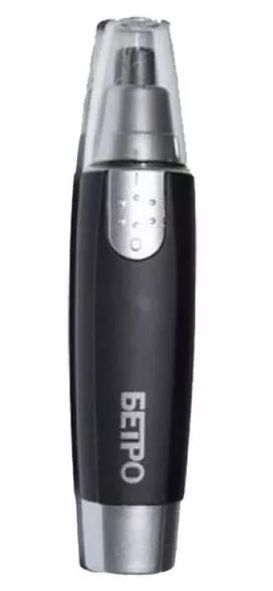 Триммер для стрижки волос в носу и ушах. Безопасная конструкция, мягкое покрытие ручки гарантирует легкое управление, в комплекте защитный колпачок и щеточка для чистки., Питание: батарейка 1.5В тип АА.