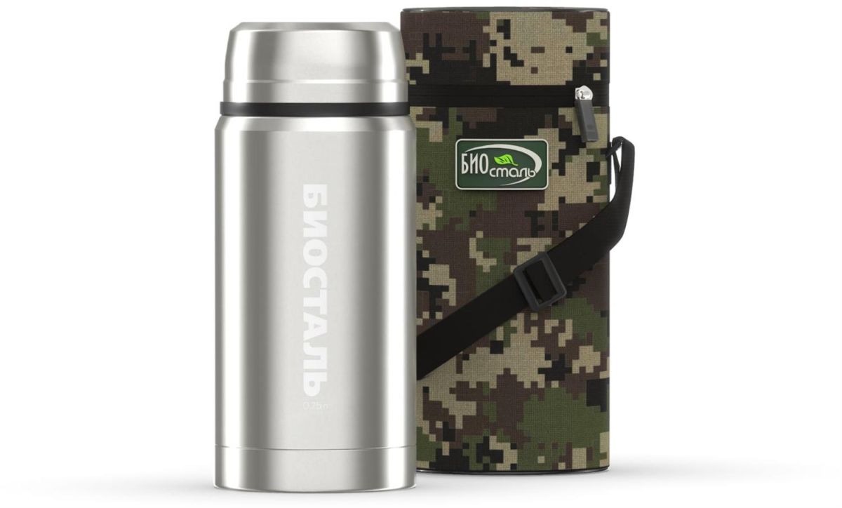 Объем 0,75л.Пищевой термос с широким горлом NTS-750B ТМ «БИОСТАЛЬ» относится к серии «ОХОТА». Термосы с широким горлом предназначены для хранения горячей пищи (преимущественно вторых блюд), холодной пищи (замороженных продуктов, мороженного и пр.), фруктов и льда. Пробка имеет дополнительную термоизоляцию и специальную кнопку для сброса пара. Термосы поставляются в комплекте со складной ложкой, которая удобно размещается в пробке и термочехлом.
