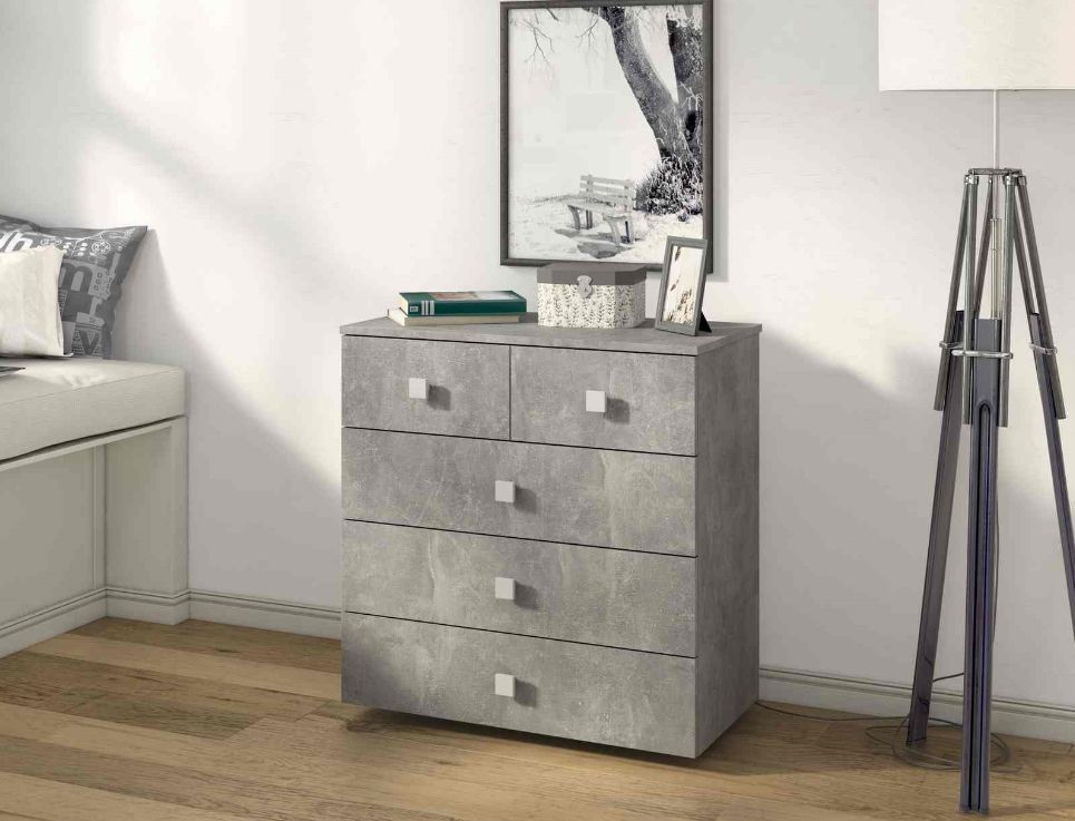 Практичный комод с пятью ящиками. Фасады и крышка комода выполнены из ЛДСП, корпус ЛДСП.Направляющие роликовые, Размер 770мм*800мм*394мм