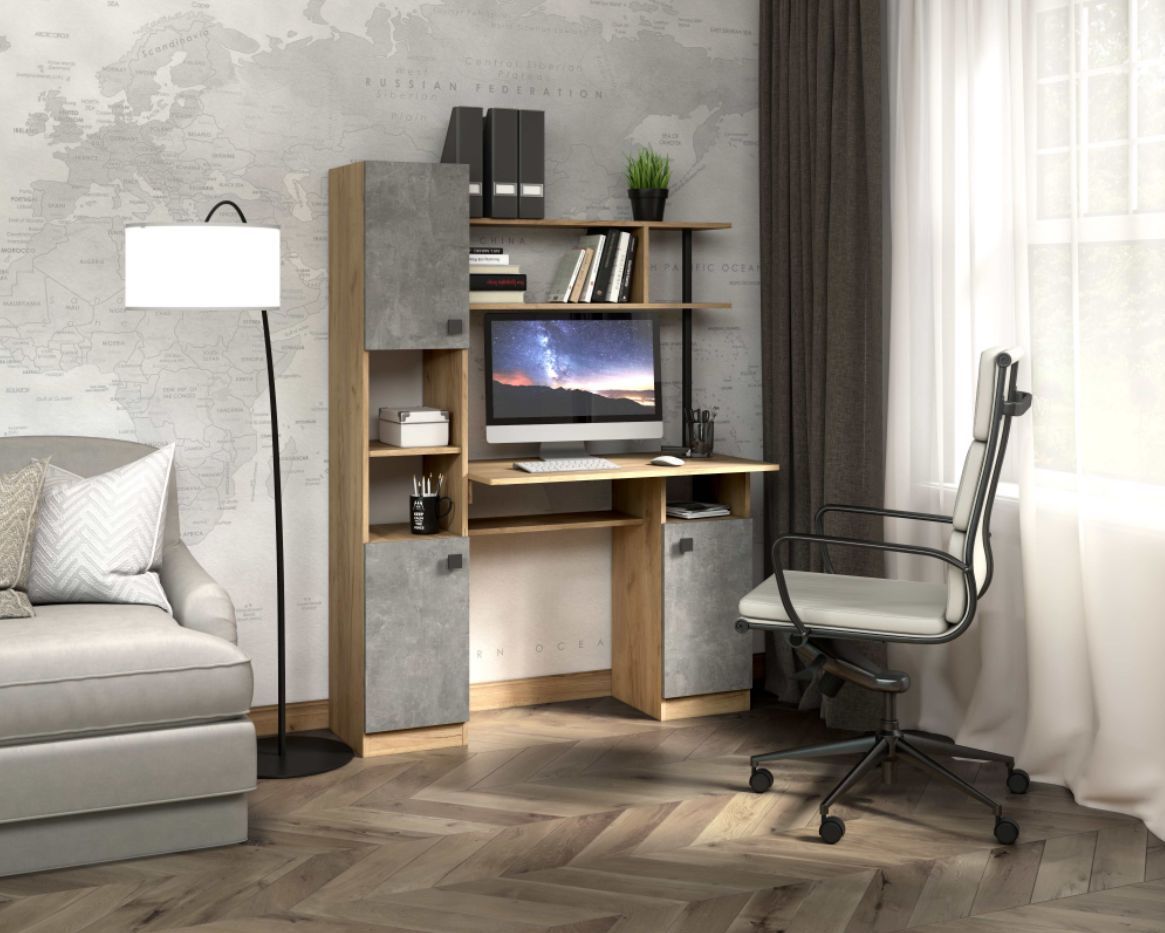 Простой и функциональный письменный стол для компьютера, он прекрасно подойдет для работы и учебы. Пенал (дополнительная секция) превращает простой функциональный стол в полноценную рабочую зону, он вмещает закрытые полки для хранения документов и две ниши под дополнительную оргтехнику. Комплект занимает немного места и дает возможность организовать удобное рабочее место практически в любой комнате. Размеры: Высота: 1600 мм Ширина: 1200 мм Глубина: 500 мм