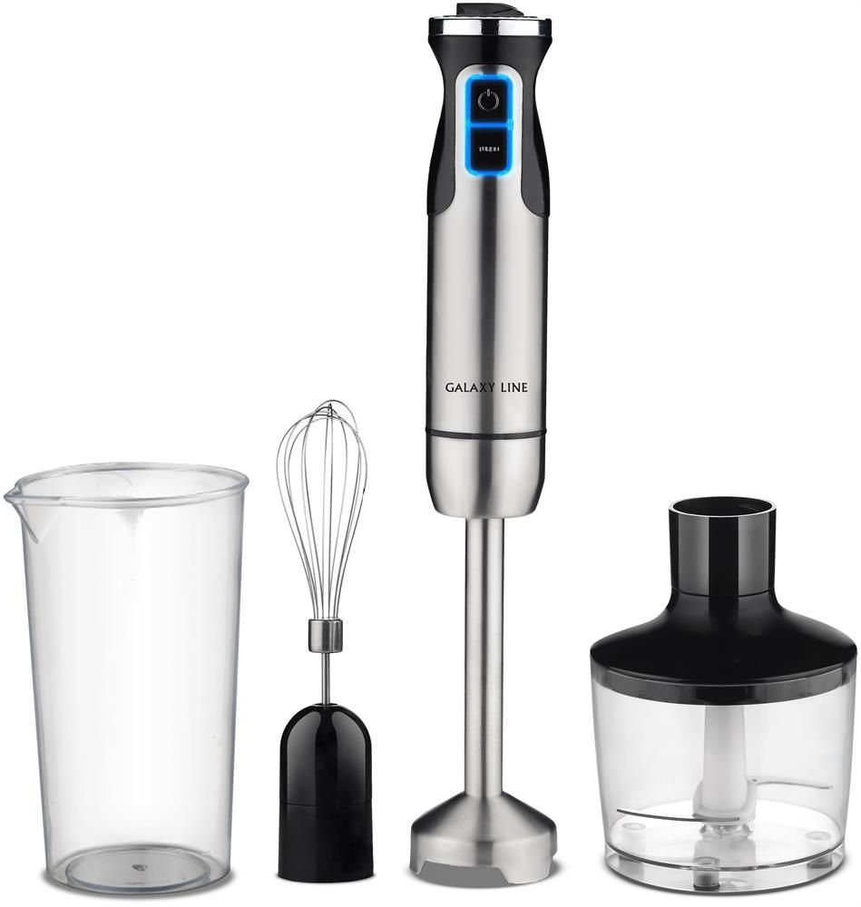 Galaxy LINE GL 2134 Блендер погружной 1350 Вт, 17 000 об/мин, 12 скоростей + режим «ТУРБО», мерный стакан 700 мл, насадка-блендер из нержавеющей стали, насадка-венчик, чаша измельчителя объемом 860 мл, защита от перегрева, двухлопастный нож, 220-240 В, 50 Гц,