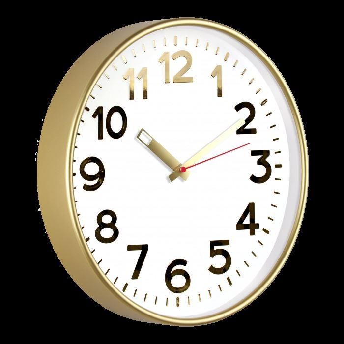 Часы настенные пластиковые, модель 78778781, размер 305*305*50 мм, стекло минеральное, пластиковый обод, цвет-золото, рельефные цифры с тиснением фольгой под золото.