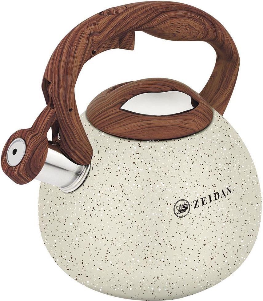 Чайник со свистком ZEIDAN Z-4389 3,0 л, Чайник со свистком, 3,0 л, нержавеющая сталь, литой корпус, ИНДУКЦИОННОЕ ДНО, КУРКОВЫЙ МЕХАНИЗМ, внешнее антипригарное мраморное покрытие, устойчивое к высоким температурам; фиксированная прорезиненная ручка "под дерево". Подарочная упаковка.