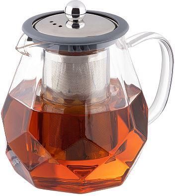 Чайник заварочный, AROMA, 820 мл из боросиликатного стекла, корпус с гранями Материал: термостойкое боросиликатное стекло, силикон, 304 нерж сталь. Объем: 820 мл. Усиленный фильтр из 304 стали. Силиконовая вставка на крышке из 304 стали. Отверстия для выпуска пара на крышке. Цвет силикона на выбор. Упаковка: пуз пленка + цв коробка+защитный пакет на крышке.