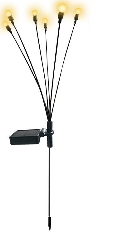 Садовый светильник на солнечной батарее с колышком Светильник состоит из веточки с 6 белыми шариками, в каждом шарике светодиод. Заряд от солнечной батареи. Высота: 70 см Питание: 1,2В AА Ni-Mh 400 мАч Солнечная панель: 2В 100мА Количество светодиодов: 6 LED Цвет светодиодов: теплый белый Материал: пластик, металл