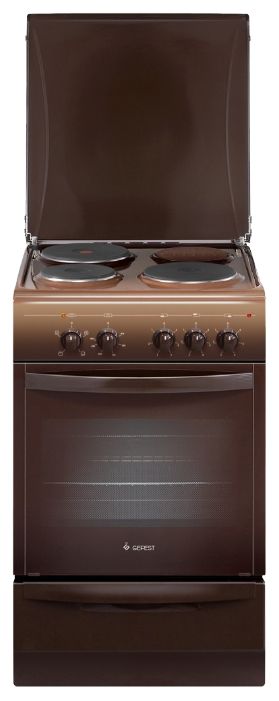 Габариты, ШхГхВ, см: 50x58.5x85; Цвет: коричневый; Дизайн: классический; Ширина, см: 50; Фасад: эмалированный; Варочная поверхность: эмалированная; Крышка стола: металлическая крышка; Количество зон приготовления: 3; Класс энергопотребления: В; Диапазон номинальных напряжений, В: 220-230; Номинальная потребляемая мощность электроэнергии, кВт: 5,5-6,02; Управление: механическое; Подсветка духовки: одинарная; Направляющие духовки: штампованные; Терморегулятор; Ящик для посуды и принадлежностей: откидная крышка; Ножки регулировочные; Сетевой шнур и вилка: в наличии; Объем духовки, л: 55; Мощность верхнего ТЭН духовки, кВт: 0,8; Мощность нижнего ТЭН духовки, кВт: 1,2