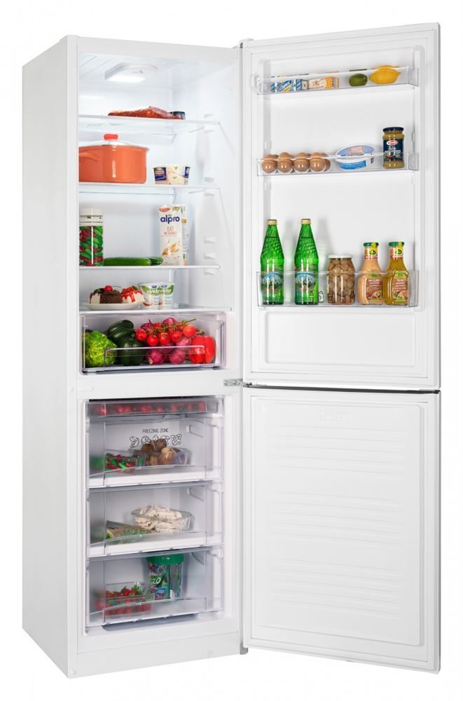 Двухкамерный отдельностоящий холодильник NORDFROST NRB 162NF с нижним расположением морозильной камеры имеет общий объем 310 л. Модель выполнена в стильном и лаконичном дизайне. Холодильник высотой 188 см подойдет в интерьер, как современной, так и классической кухни. Модель с системой охлаждения Frost Free сочетает капельную систему оттаивания в холодильном отделении и систему размораживания No Frost в морозильном. Воздух, циркулирующий в камерах, не смешивается, благодаря чему показатели температуры и влажности остаются неизменными и комфортными для лучшего сохранения продуктов. Морозильная камера объемом 105 л имеет мощность заморозки до 3,5 кг в сутки. На стенках морозильника не образовывается наледь и иней, что навсегда избавит пользователя от ручного размораживания. Холодильник характеризуется высоким классом энергоэффективности А+ и низким уровнем шума до 41 дБ. Холодильник оснащен LED-освещением в холодильной камере, которое не выделяет тепло во внутреннее пространство холодильника, а также отличается экономичностью и долгим сроком службы. Диапазон температурного режима в холодильной камере 0…+8°С, в морозильной не выше -18°С. В холодильнике NORDFROST NRB 162NF продуманное для удобства пользователя внутреннее пространство: - ламинированная внутренняя поверхность холодильника с антибактериальным покрытием; - 4 полки из закаленного стекла в холодильном отделении; - большой выдвижной ящик для овощей и фруктов; - 3 полки на двери; - 3 прозрачных ящика в морозильном отделении позволяют поместить и длительно хранить большие куски мяса, курицу, полуфабрикаты и другие объемные замороженные продукты; - лоток для заморозки ягод. Внутренняя посуда холодильника имеет красивый серебристый отлив и инфографику на ящиках и дверных полках. При необходимости чистки или замены уплотнитель двери легко снимается и ставится обратно. Возможность перенавешивания двери создает удобство открывания с нужной стороны.
