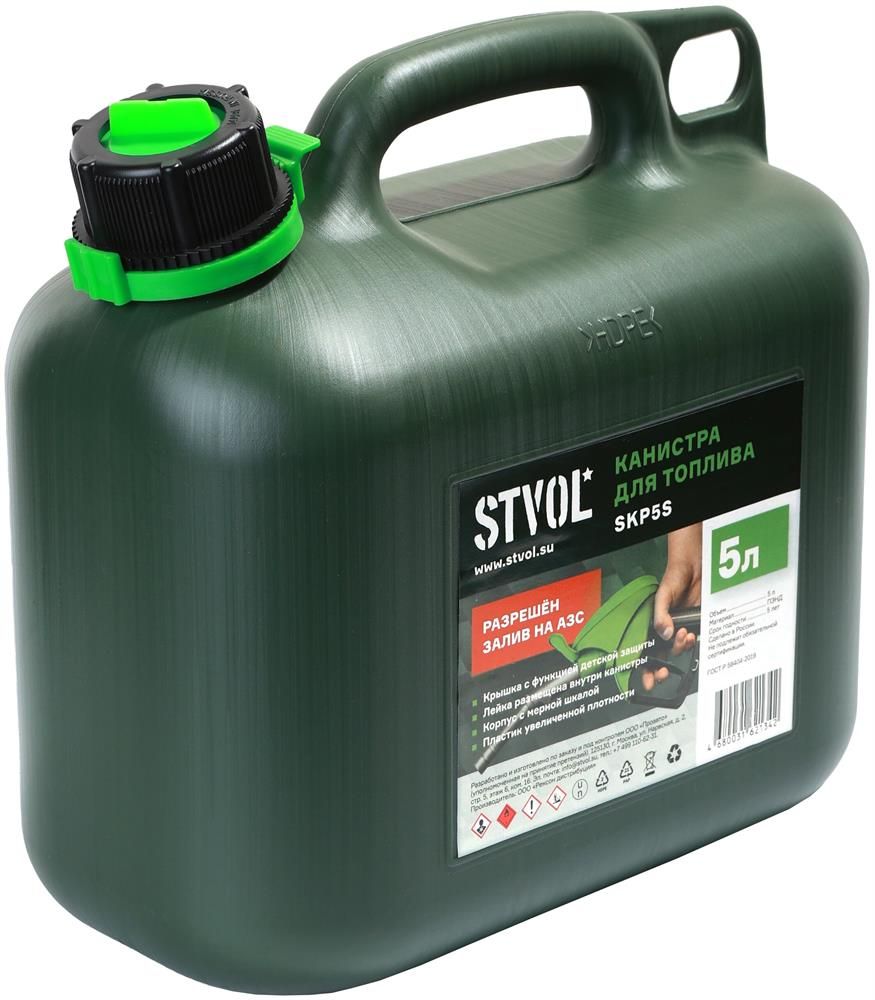 Читать все статьиКанистра STVOL SKP5S для ГСМ, пластиковая, 5л, с мерной шкалой
