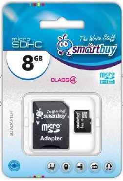 Читать все статьиКарта памяти SMARTBUY (SB8GBSDCL4-01) MicroSDHC 8GB Сlass4 + адаптер