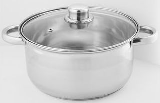 Объем 4,2 л. Диаметр 22 см. Глубина 11.5 см. Толщина стали 0,3 мм. Кастрюля из высококачественной нержавеющей стали. Специальная форма, исключающая скопление остатков пищи и жира. Обод, препятствующий переливанию жидкостей через край. Термосберегающее дно с повышенной термоотдачей. Стеклянная крышка с отверстием для отвода пара позволяет поддерживать оптимальный процесс нагрева. Металлические ручки. Быстрый нагрев пищи, длительное удержание тепла.