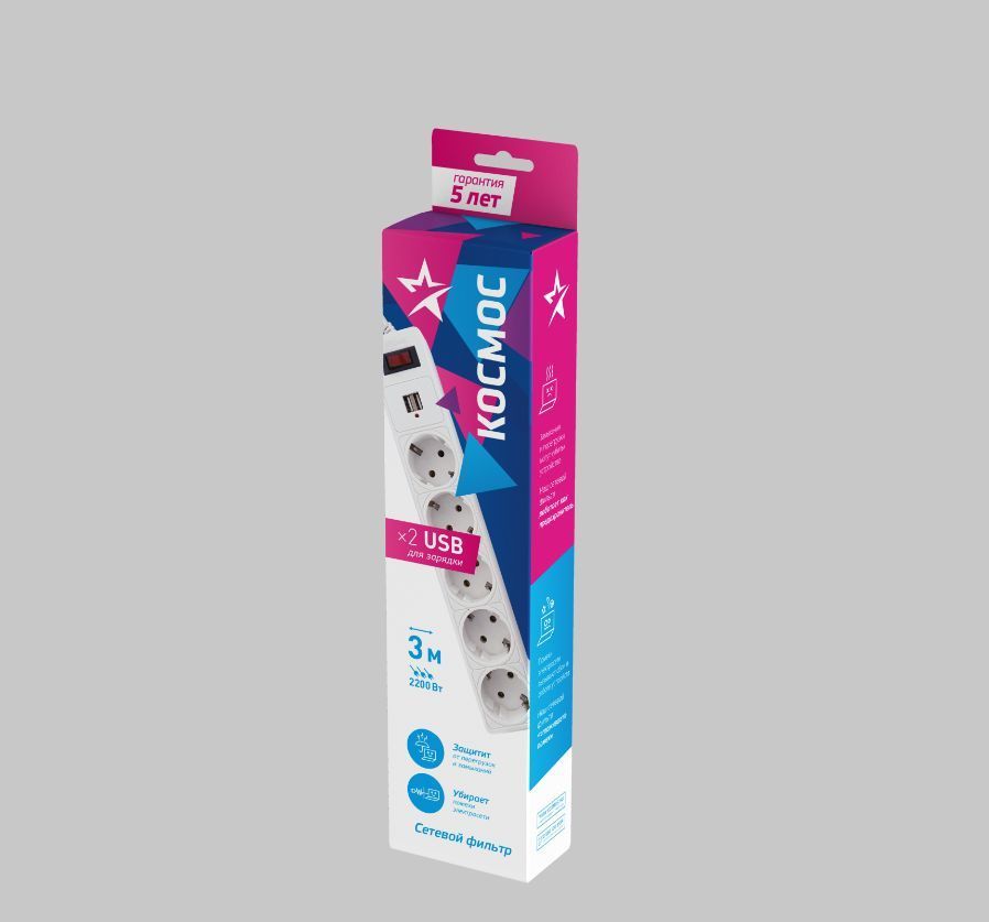 Сетевой фильтр Космос защищает Вашу технику от выхода из строя из-за "некачественного" тока: защита от многоразовых перегрузок и замыканий. Лучше всего подходит для подключения чувствительной электроники: компьютеров, телевизоров, стериосистем и т.д. Максимальная мощность 2200 Вт, что достаточно для одновременного подключения двух ноутбуков, телевизора, игровой приставки и любого другого мощного устройства. 100% медный трехжильный кабель с сечением 0,75мм, пожаробезопасный корпус. индикатор сети. Номинальный ток 10А. 220В. предохранитель - биометаллический размыкатель. Модель с USB - 2 дополнительных слота для зарядкт гаджетов 2.1A, 5V Цвет белый