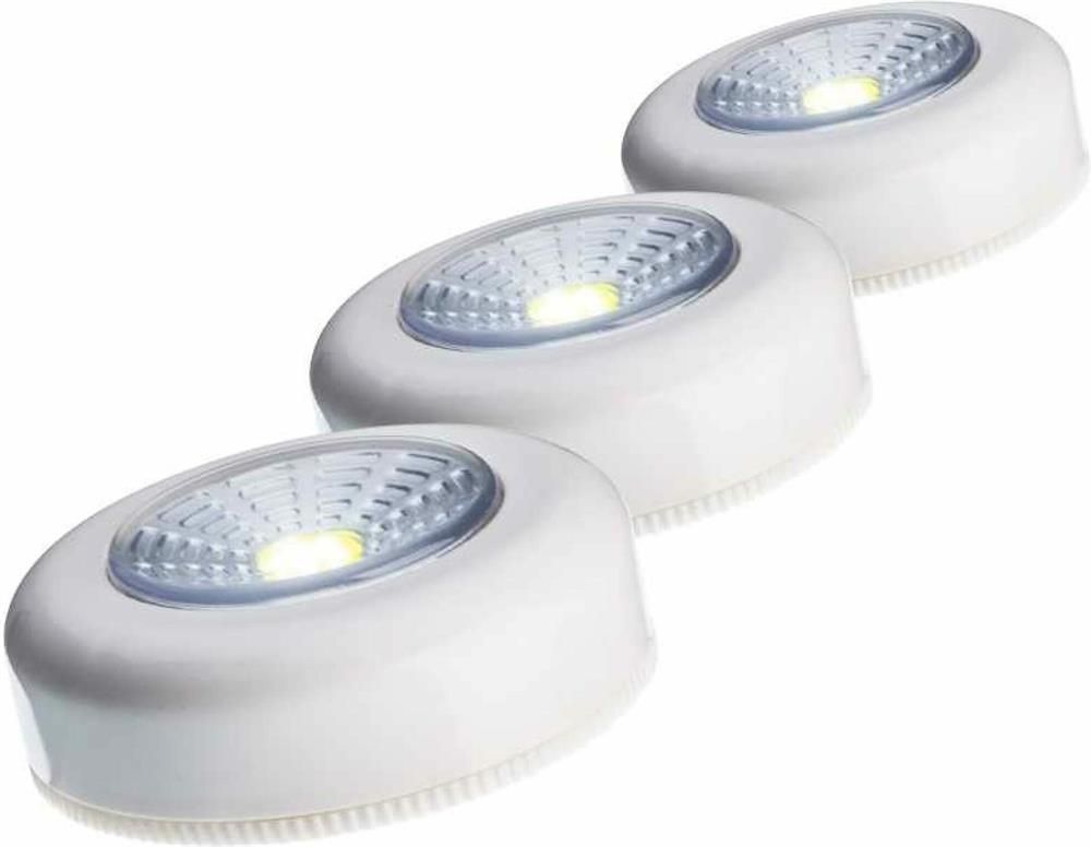 Набор мебельной подсветки (три фонарика) КОСМОС (KOC304B), не требуют прокладки проводов. Самоклеящаяся основа и универсальный белый цвет корпуса. Светят широким светом – освещают пространство с одной стороны. Яркий COB-светодиод позволяет создать достаточно эффективную подсветку в шкафу или на кухне. Источник света: 1 Вт COB LED; Источник питания: 3xAAA (в комплект не входят); Количество режимов: 1 (яркий); Световой поток: 80 лм.; Дистанция освещения: 10 м2; Корпус: ABS-пластик, IP42; Размер: 7.0x7.0x2.5 см.; Самоклеящаяся поверхность; 3 штуки в комплекте.