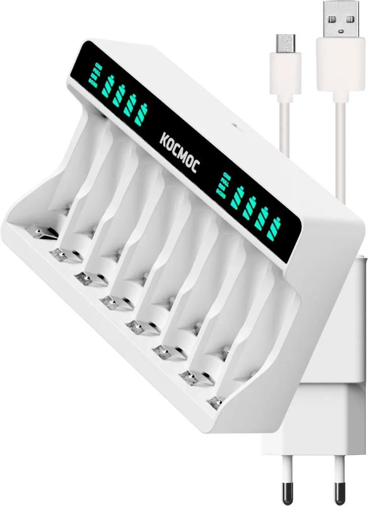 Автоматическое зарядное устройство с индикацией заряда каждого канала 8 независимых слотов для АА ААА аккумуляторов с индивидуальной индикацией Дополнительно комплектуется кабелем USB:Type-C и блоком питания 2.1А Блок питания и кабель можно дополнительно