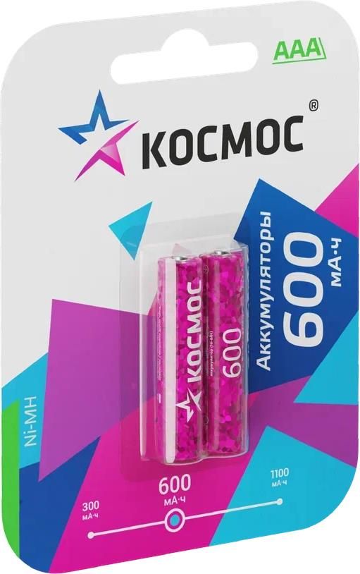Ni-Mh (никель-металлогидридные) аккумуляторы Космос – заменяют обычные батарейки типоразмера ААА (также называют «мизиньчиковые», на приборах-потребителях может обозначаться как LR03, R03, UM4). Быстро окупятся - можно заряжать сотни раз, экономя на обычн
