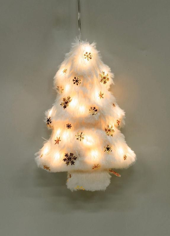 Подвесной светильник KOC_TAB-B108. Интерьерное украшение 2 в 1 - Красивый новогодний декор в выключеном состоянии и мини-светильник во включенном. Необыкновенное подвесное новогоднее украшение размером: 12х19см в виде елочки, мягкой на ощупь и легкой как облочко. с 10 светодиодами, работает от батареек, т.е. можно прикрепить практически в любое место. Универсальная и безопасная. Световые лампочки (диоды) экономичны, елочка прослужит долгое время! Провод прозрачный.