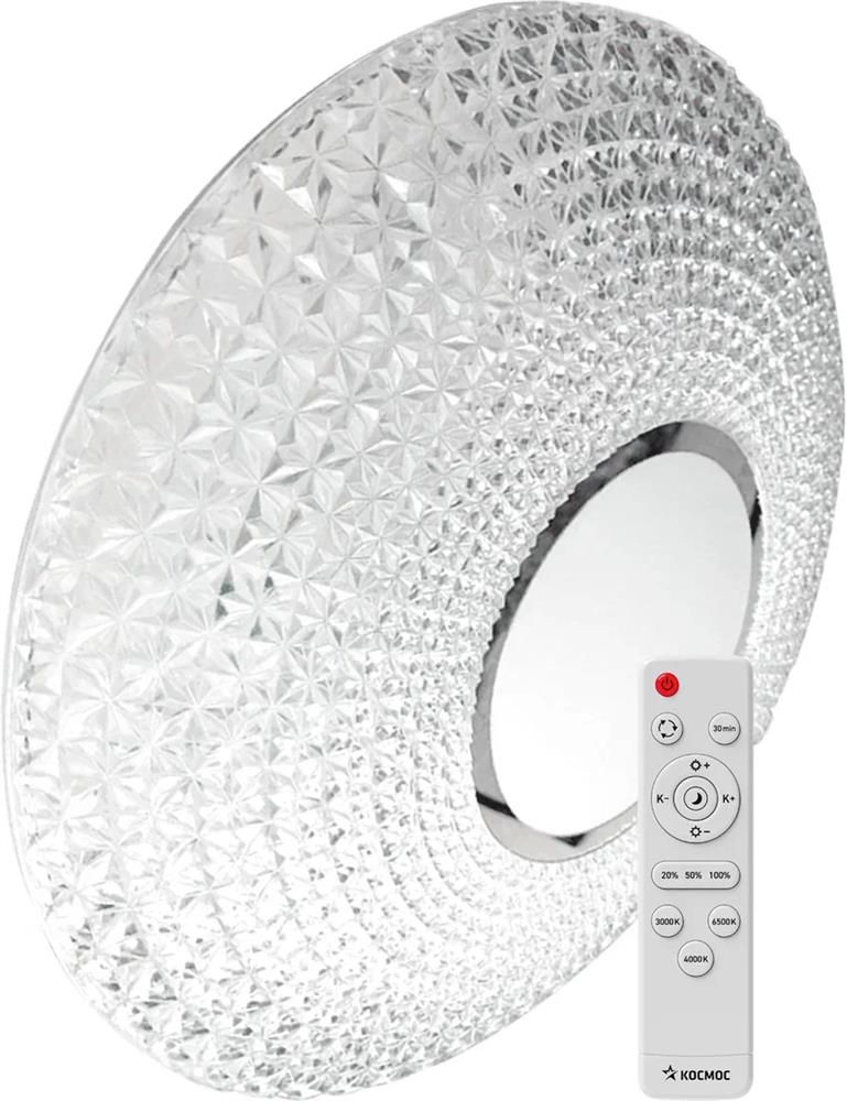 Светодиодный настенно-потолочный светильник Космос Premium Crystal - прекрасное решение для организации основного или дополнительного освещения офисных, торговых или жилых помещений. Современный дизайн и легкий акцент на роскошь. Регулировка цветовой температуры и мощности светового потока от 10 до 100% позволяет моделировать освещение по вашему вкусу. Имеется функция ночника. Доступны светильники с 2-я различными уровнями мощности для различных помещений, 55/75 Вт.