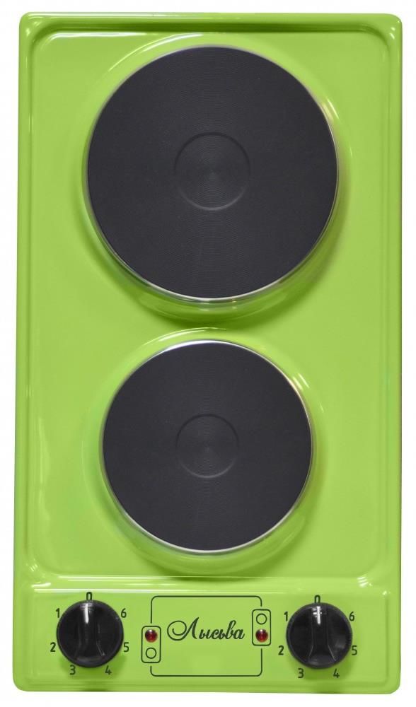 (ШхГхВ)29х51х10см.Цвет зеленое яблоко.Мощность единовременно потребляемая, кВт 2,2.Мощность конфорок, кВт (большой) 1,5.Мощность конфорок, кВт (малой) 0,7.Мощность установленная, кВт 2,2.Ступенчатые переключатели.