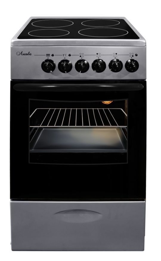 (ШхГхВ)50х60х84см.Цвет жемчужно-светло-серый.Тип рабочей поверхности электрическая.Диапазон температуры духового шкафа, °С 50-250.Мощность ТЭНа нижнего / верхнего, кВт 1.2 / 0.8.Мощность установленная (потребляемая), кВт 9.3 (8.5).Количество конфорок 4.Тип духовки электрическая.Мощность гриля, кВт 1.5Объём духовки, л 57.Материал варочной поверхности стеклокерамика. Подсветка.Дверца с двойным стеклом.Выдвижной ящик.Противень.Решетка.