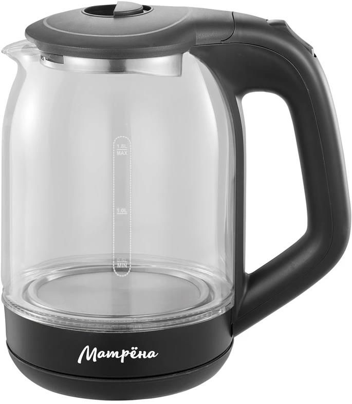 Объем 1,8 л Корпус из термостойкого стекла Шкала уровня воды Внутренняя подсветка Закрытый нагревательный элемент из нержавеющей стали Поворот на подставке 360° Защита от работы без воды Автоматический выключатель Место для хранения шнура Мощность 1500 Вт Цвет чёрный