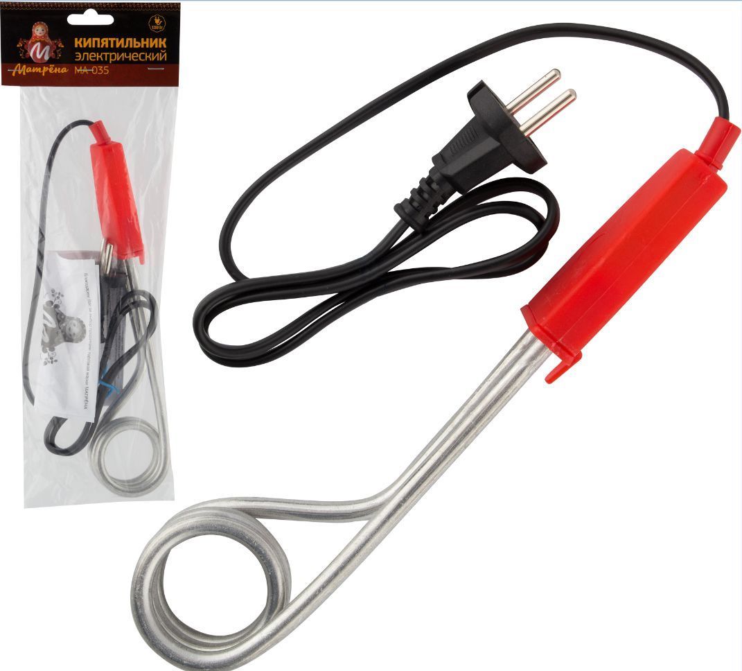 Мощность 1,2 кВт. Длина нагревательного элемента 14 см. Диаметр нагревательного элемента 6,8 мм. Алюминиевый ТЭН. Длина шнура 85 см. Пакет с подвесом.