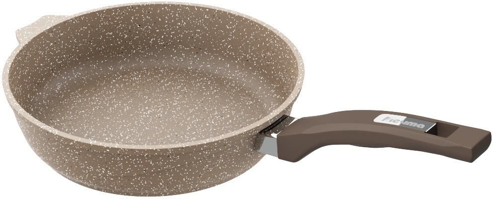 Сковорода 26 см. с несъемной ручкой из бакелита. Антипригарным покрытием Greblon Rough на водной основе без PFOA. Серия "Гранит brown". Подходит для всех типов плит, кроме индукционных. Можно использовать в посудомоечной машине. Ресурс более 15 000 циклов, толщина покрытия до 55 мкр. Толщина дна 5,5-6мм., толщина стенок 3,6-4мм. Покрытие Greblon Rough позволяет готовить с минимальным количеством масла, сохраняя вкусовые и полезные свойства продуктов. Литой толстостенный корпус не подвержен деформации, а утолщенное дно равномерно распределяет тепло по всей поверхности.
