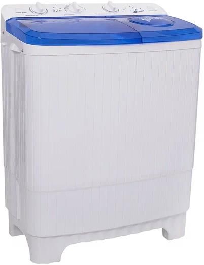 Габариты прибора — 68х40х85см. Стиральная машина полуавтоматическая двухбаковая. Загрузка для стирки — до 6кг, для отжима — до 5кг. Экономия воды. Быстрый цикл стирки. Низкое энергопотребление. Простота в эксплуатации, Мобильность. Низкий уровень шума. Две программы стирки: Бережная (для деликатных тканей) и Обычная (для стандартной стирки). Прозрачные крышки для полного контроля за процессом. Система TornadoDry (при работе центрифуги создается воздушный поток, который вместе с отжимом осуществляет предварительную сушку). Сливной насос (помпа). Реверс (активатор вращается попеременно в обоих направлениях). Возможность стирать и отжимать одновременно. Фильтр для сбора ворса и пуха. Большой активатор сложной формы с перфорацией для насыщения воды пузырьками для лучшего проникновения моющего раствора в ткань. Большая вместимость при скромных внешних габаритах. Быстрый отжим — 1350об/мин. Вес: 13,85кг. Мощность моторов (стирка/отжим) 300Вт/180Вт
